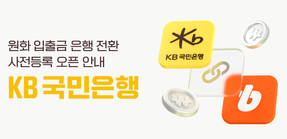 한국의 대표 암호화폐 거래소 빗썸이 국민은행과의 새로운 파트너십을 발표했습니다! 이번 협업은 국민은행 계좌와 빗썸을 연동하여 보다 안전하고 편리하게 원화(KRW)를 입출금할 수 있도록 지원합니다.